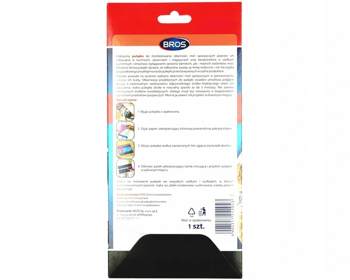 Lep BROS Max to estetyczna pułapka do monitorowania obecności moli spożywczych poprzez ich odławianie w kuchniach, spiżarniach i magazynach oraz bezpośrednio w szafkach kuchennych. Lep umożliwia wyłapywanie zarówno damskich, jak i męskich osobników moli.
