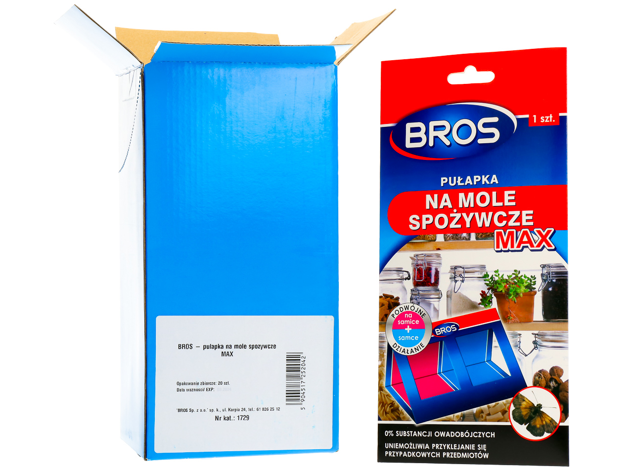 Bros Skuteczna pułapka na mole spożywcze, działa na samice i samce. Zestaw 20 sztuk
