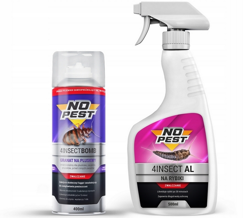 Zestaw preparatów przeciw rybikom. Środek, bomba na rybiki cukrowe, pluskwy, pająki, karaluchy, muchy i inne 4INSECT Bomb + 4INSECT AL spray na rybiki!