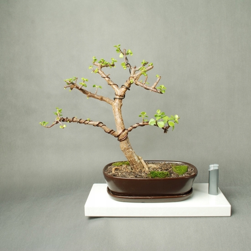 Bonsai Portulacaria Afra w stylu Shakan pochylonym