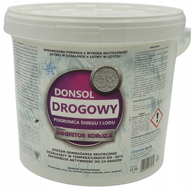 - Donsol DROGOWY wnika w lód i śnieg znacznie szybciej niż sól oraz działa skuteczniej i w szerszym zakresie temperatur niż czysty chlorek sodu.