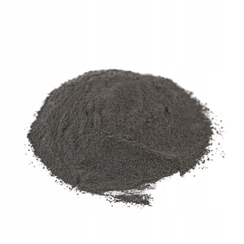 Mączka zawiera znikome ilości dolomitu (białe grudki), przemyconego z powodu wykorzystania tej samej linii do pakowania obu skał.