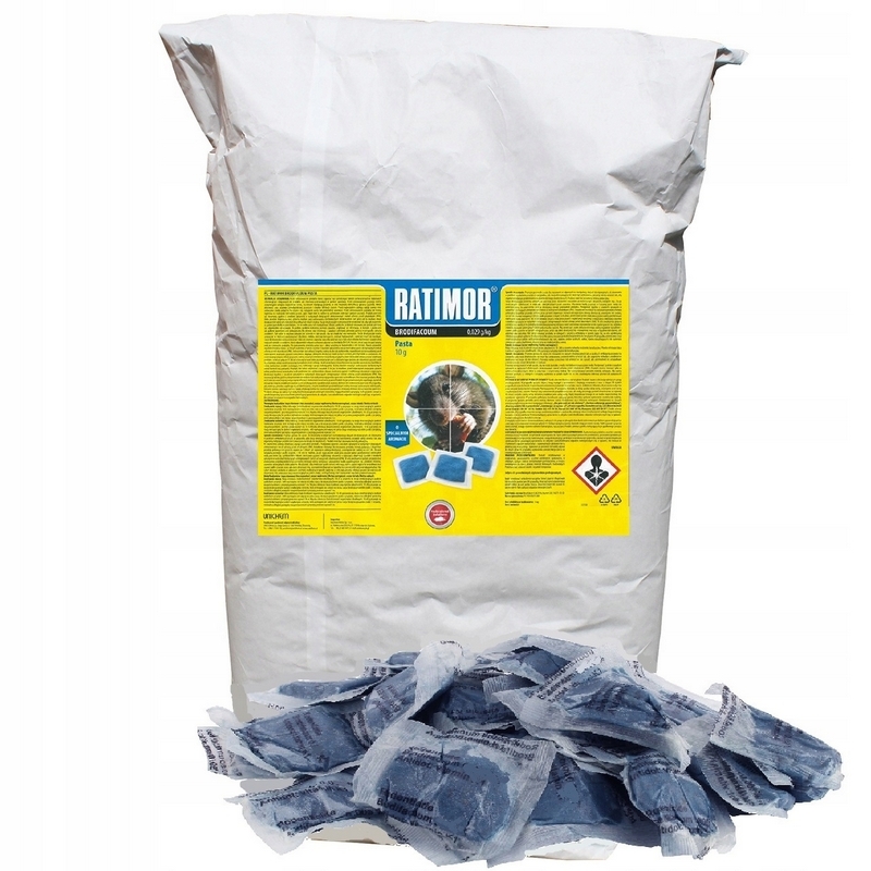 RATIMOR to trująca jednodawkowa przynęta pokarmowa o właściwościach mumifikujących. przeznaczona do zwalczania szkodników sanitarnych (szczurów i myszy) w pomieszczeniach (lokalach użyteczności publicznej, hotelach, mieszkaniach, zakładach produkcyjnych, magazynach, obiektach handlowych i inwentarskich, oborach, chlewniach, mleczarniach itp.) oraz na zewnątrz – w bezpośrednim ich sąsiedztwie po umieszczeniu jej w stacji deratyzacyjnej. Trutka nie prowadzi do zgonu przed upływem 48 godzin, nawet po spożyciu dużej dawki. Dzięki temu inne gryzonie nie nabierają podejrzeń i bez obaw spożywają przynętę aż do całkowitego unicestwienia. Działa na gryzonie odporne na kumarynę i warfarynę. Preparat zawiera gorzką substancję, która zapobiega przypadkowemu połknięciu
