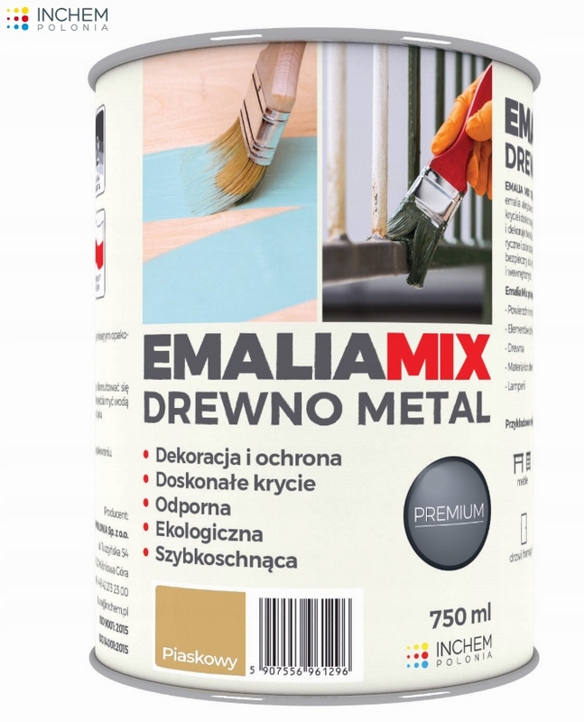 Emalia MIX Drewno Metal, to wodorozcieńczalna emalia akrylowa o nowoczesnej formule zapewniającej pełne krycie i doskonałą przyczepność do podłoża. Emalia Mix Drewno Metal chroni i dekoruje tworząc powłoki odporne na warunki atmosferyczne i zabrudzenia.