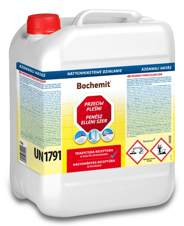 ZASTOSOWANIE: preparat jest stosowany do likwidacji pleśni m.in. na ścianach, kafelkach, w łazience w okolicach wanien, umywalek, aneksów kuchennych, okien oraz drzwi. Środek może być stosowany do tynku, muru, kamienia, granitu, naturalnego drewna, ceramiki, płytek, szkła ceramicznego, uszkodzonej emalii, szkła czy silikonu. Preparat BOCHEMIT sprawdza się w usuwaniu pleśni i grzybów w kuchniach, pralniach, piwnicach, garażach, łaźniach, saunach, basenach lub pomieszczeniach magazynujących.