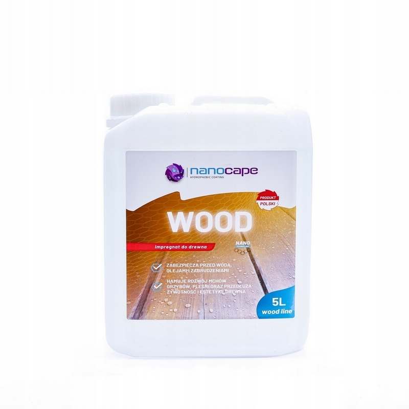 NANOCAPE WOOD - Innowacyjny wodny impregnat skutecznie chroniący drewno przed szkodliwym działaniem mchów, glonów i pleśni. Dzięki wykorzystaniu nanocząsteczek, preparat głęboko penetruje strukturę drewna i chroni je tworząc trwałą powłokę. Idealne rozwiązanie dla wszystkich osób, dla których kolor naturalnego drewna jest równie ważny jak jego zabezpieczenie. Preparat gwarantuje trwałą ochronę zabezpieczonego drewna przed wilgocią, przedłużając w ten sposób jego żywotność oraz wygląd.