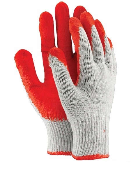 2. Rękawiczki robocze z dzianiny bawełnianej powlekane. Doskonale sprawdzają się przy pracach zarówno ogrodowych jak i budowlanych. Dzięki ściągaczowi dobrze przylegają do dłoni.