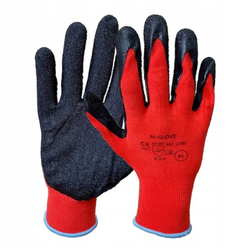 2. Rękawiczki robocze z dzianiny bawełnianej powlekane. Doskonale sprawdzają się przy pracach zarówno ogrodowych jak i budowlanych. Dzięki ściągaczowi dobrze przylegają do dłoni.