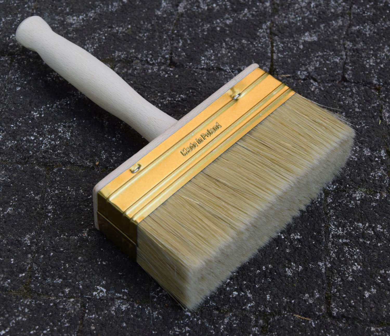 1. Pędzel ławkowiec 140mm polskiej produkcji. Dzięki dużej szerokości idealnie nadaje się do impregnowania większych powierzchni ( Elewacje, tarasy itp) Solidnie wykonany posłuży przy niejednej pracy.