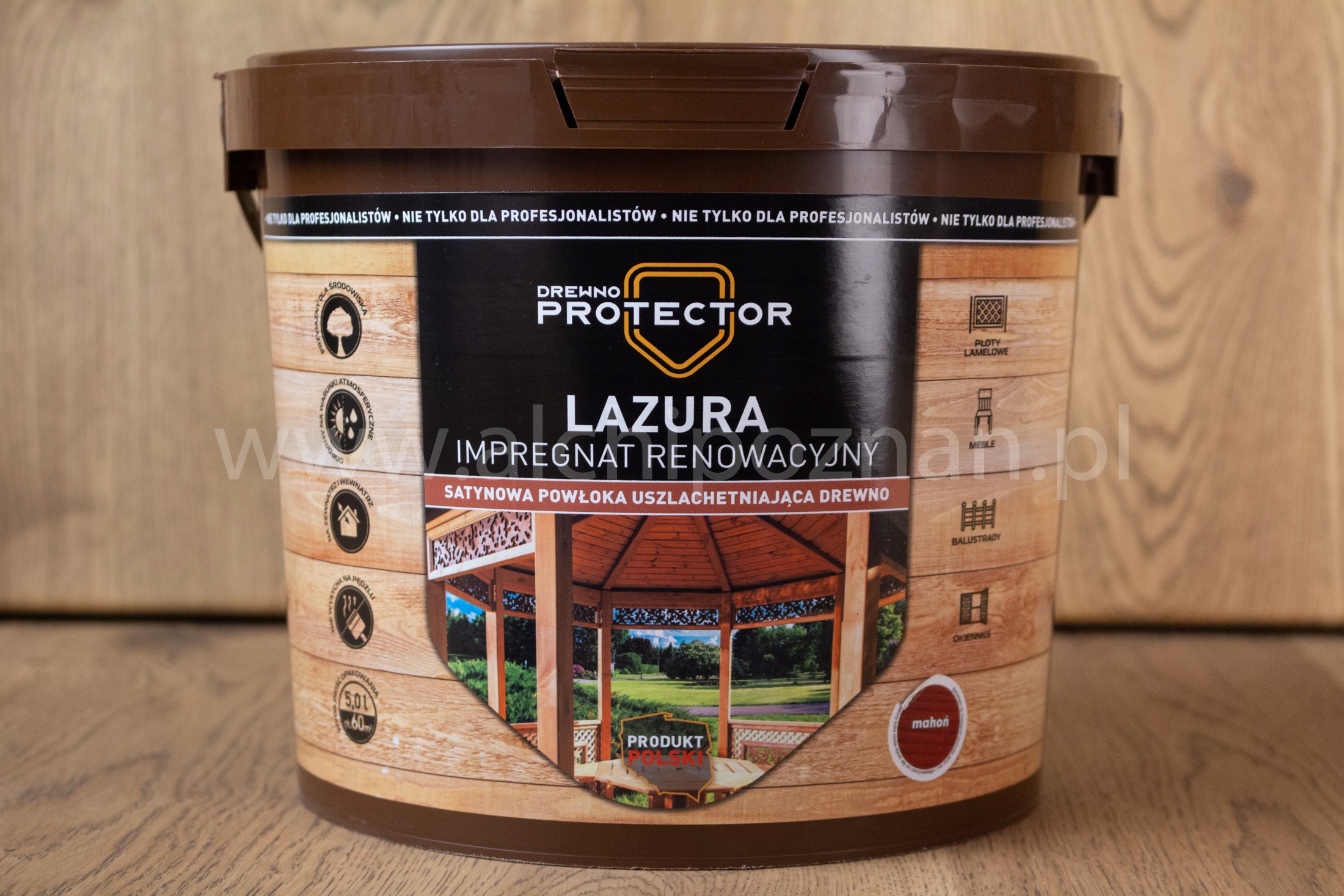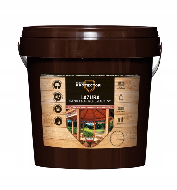 Opakowanie zawiera 5 l impregnatu renowacyjnego LAZURA marki DEKSPOL w wybranym kolorze.
