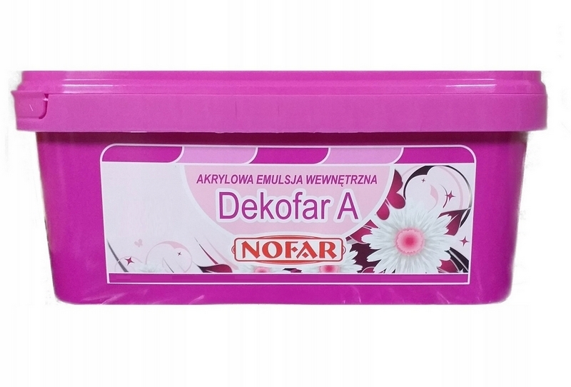 Dekofar A to wysokiej klasy akrylowa emulsja wewnętrzna przeznaczona do dekoracyjnego malowania sufitów i ścian wewnątrz budynków (tynki cementowe i cementowo-wapienne, gipsowe, płyty kartonowo-gipsowe, tapety itp.)
