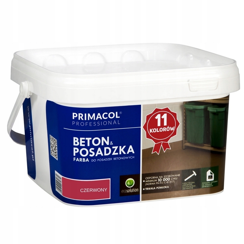 Farba PRIMACOL z serii BETON POSADZKA to produkt przeznaczony do dekoracyjno-ochronnego malowania posadzek oraz innych powierzchni betonowych. Dedykowany do stosowania wewnątrz pomieszczeń (garaże, piwnice, warsztaty, składy, kotłownie) oraz do malowania zewnętrznych elementów betonowych, tj. tarasów, ogrodzeń, balkonów, fasad, garażów, architektury ogrodowej, murów czy chodników. Świetnie sprawdza się również do malowania pasów i oznaczeń na parkingach, drogach i chodnikach.