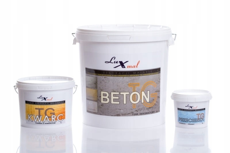 Chcesz wykonać na ścianie aplikację, przypominającą surowy beton? Postaw na sprawdzony zestaw marki Luxmal – znajdziesz w nim tynk Beton, a także akrylowo-winylowy grunt podkładowy Kwarc TG oraz zabezpieczającą tynk Przecierkę Półmat. Z ich pomocą – nawet samodzielnie – wykonasz modną imitację betonu!