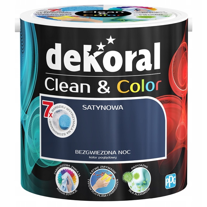Farba Dekoral z serii CLEAN&COLOR to produkt przeznaczony głównie do użytku wewnętrznego, w ramach dekoracyjnego malowania ścian. Satynowe farby lateksowe z tej serii to świetny wybór do każdego wnętrza, dający niepowtarzalny efekt, dzięki bogatej kompozycji barw. Zaletą farby jest przede wszystkim to, że jest 7x bardziej wytrzymała niż standardowe farby. Dodatkowo charakteryzuje ją łatwość usuwania powstałych zabrudzeń, przyjazna alergikom, doskonałe krycie powierzchni oraz wysoka odporność na szorowanie.