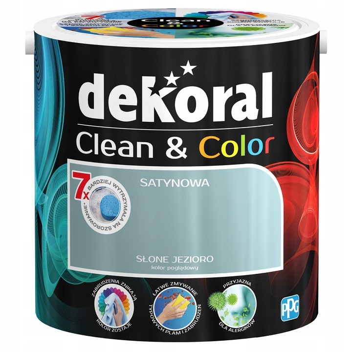 Farba Dekoral z serii CLEAN&COLOR to produkt przeznaczony głównie do użytku wewnętrznego, w ramach dekoracyjnego malowania ścian. Satynowe farby lateksowe z tej serii to świetny wybór do każdego wnętrza, dający niepowtarzalny efekt, dzięki bogatej kompozycji barw. Zaletą farby jest przede wszystkim to, że jest 7x bardziej wytrzymała niż standardowe farby. Dodatkowo charakteryzuje ją łatwość usuwania powstałych zabrudzeń, przyjazna alergikom, doskonałe krycie powierzchni oraz wysoka odporność na szorowanie.