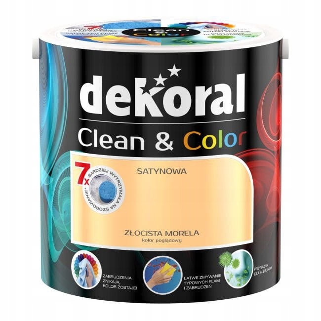 Farba Dekoral z serii CLEAN&COLOR to produkt przeznaczony głównie do użytku wewnętrznego, w ramach dekoracyjnego malowania ścian. Satynowe farby lateksowe z tej serii to świetny wybór do każdego wnętrza, dający niepowtarzalny efekt, dzięki bogatej kompozycji barw. Zaletą farby jest przede wszystkim to, że jest 7x bardziej wytrzymała niż standardowe farby. Dodatkowo charakteryzuje ją łatwość usuwania powstałych zabrudzeń, przyjazna alergikom, doskonałe krycie powierzchni oraz wysoka odporność na szorowanie.