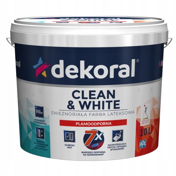 Farba lateksowa Clean&White przeznaczona jest do dekoracyjnego malowania ścian i sufitów wewnątrz pomieszczeń, wykonanych z tynków cementowo-wapiennych, tynków gipsowych, betonu, płyt gipsowokartonowych oraz tapet papierowych i z włókna szklanego. Pozostawia matową powłokę odporną na zabrudzenia i typowe plamy, np. ketchup, musztarda, cola, sok pomarańczowy, itp. Ze względu na zastosowanie nowoczesnych polimerów w połączeniu z innymi składnikami aktywnymi farba posiada wielowymiarowe parametry ochronne takie jak elastyczność, trwałość i odporność. Szczególnie polecana jest do malowania pomieszczeń narażonych na zabrudzenia typowe dla pomieszczeń o intensywnej eksploatacji, np. ciągi komunikacyjne, korytarze, pomieszczenia prywatne i biurowe, salony i jadalnie oraz pokoje dziecięce.