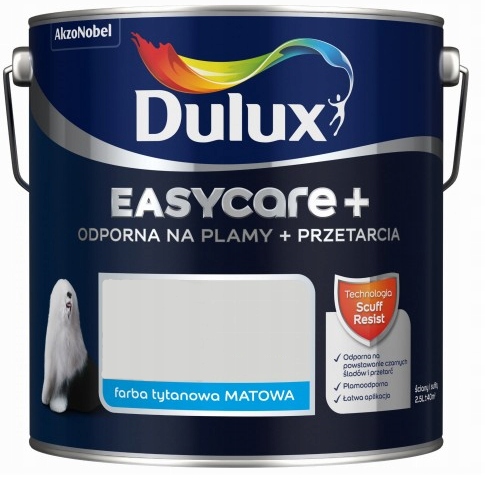 Dulux EasyCare+ to innowacyjna farba lateksowa o właściwościach tytanowych, zapewniających nadzwyczajną wytrzymałość mechaniczną.