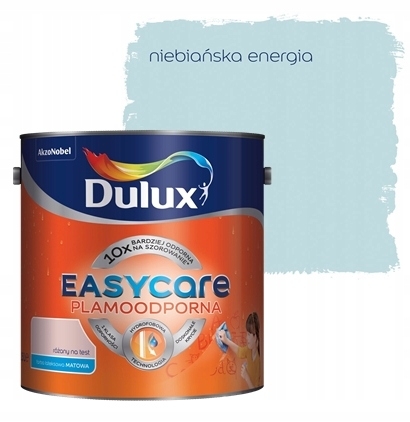 Dulux EasyCare to pierwsza na rynku plamoodporna farba wewnętrzna do ścian i sufitów o rewolucyjnych właściwościach hydrofobowych. Dzięki specjalnej powłoce farba odpycha wodę oraz wszelkie płynne zabrudzenia nie pozwalając im przeniknąć w głąb powierzchni. Tworzy matowe powłoki o najwyższej odporności na plamy.