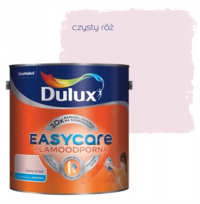 Dulux EasyCare to pierwsza na rynku plamoodporna farba wewnętrzna do ścian i sufitów o rewolucyjnych właściwościach hydrofobowych. Dzięki specjalnej powłoce farba odpycha wodę oraz wszelkie płynne zabrudzenia nie pozwalając im przeniknąć w głąb powierzchni. Tworzy matowe powłoki o najwyższej odporności na plamy.