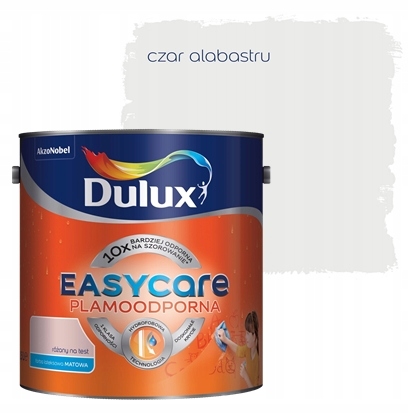 Dulux EasyCare to pierwsza na rynku plamoodporna farba wewnętrzna do ścian i sufitów o rewolucyjnych właściwościach hydrofobowych. Dzięki specjalnej powłoce farba odpycha wodę oraz wszelkie płynne zabrudzenia nie pozwalając im przeniknąć w głąb powierzchni. Tworzy matowe powłoki o najwyższej odporności na plamy.