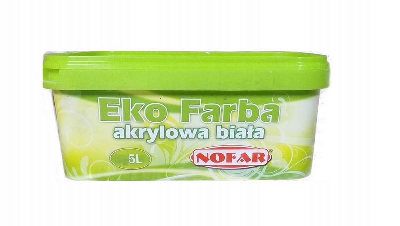 EKO FARBA to farba akrylowa biała przeznaczona do dekoracyjnego malowania sufitów i ścian wewnątrz budynków (tynki cementowe i cementowo-wapienne, gipsowe, płyty kartonowo-gipsowe, materiały drewnopochodne, tapety itp.).