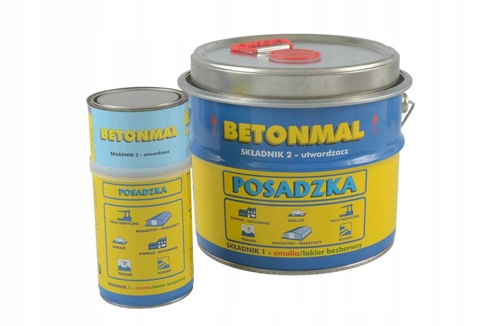 Stary niemalowany beton: usuń luźno związane fragmenty betonu, podłoże oczyść ze wszelkich zanieczyszczeń i starannie odtłuść, uzupełnij ubytki, powierzchnię przeszlifuj i dokładnie odpyl. Tak przygotowany beton zagruntuj emalią BETONMAL rozcieńczoną dodatkiem ok. 20 % rozcieńczalnika do wyrobów epoksydowych.
