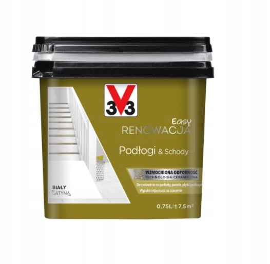 Farba Easy Renowacja podłogi & schody V33 służy do malowania podłóg drewnianych, płytek podłogowych i schodów.