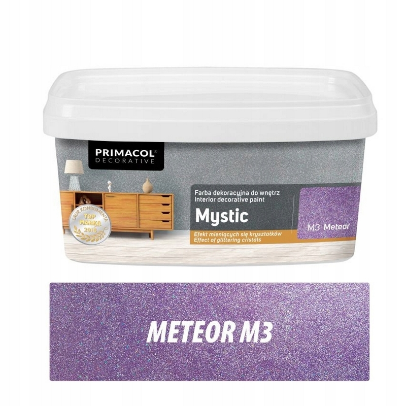 Mystic to dekoracyjna farba do wnętrz. Tysiące zawartych w farbie drobinek, iskrząc i mieniąc się w świetle, nadają powierzchniom spektakularny efekt wizualny. Mystic doskonale sprawdza się zarówno w bardzo nowoczesnych jak i klasycznych wnętrzach, całkowicie odmieniając wygląd pomieszczeń. Produkt jest dostępny w palecie gotowych kolorów.