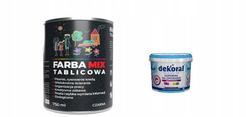 FARBA MIX tablicowa to wodorozcieńczalna, uniwersalna farba tworząca powłoki o efekcie tablicy szkolnej, idealna do pisania kredą, odporna na wielokrotne zmywanie. Jest całkowicie bezpieczna dla otoczenia.