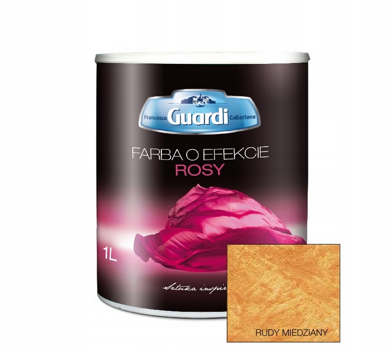 Farba o efekcie rosy, legendarny i jeden z najpopularniejszych produktów dekoracyjnych marki Francesco GUARDI Collezione. To nowoczesna farba akrylowa zawierającą ściśle wyselekcjonowane szklane wypełniacze i pigmenty metaliczne. Wymalowane powłoki tworzą wspaniałą grę światła, barwne refleksy i wyjątkowy efekt zbliżony do mikrokropelek rosy.