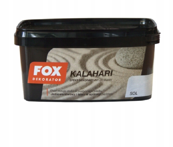 Farba Kalahari produkowana jest na bazie wyselekcjonowanych specjalistycznych dodatków strukturalnych. Gotowy efekt uzyskujemy po nałożeniu jednej warstwy, po wcześniejszym zagruntowaniu farbą podkładową Fox Initium Color.