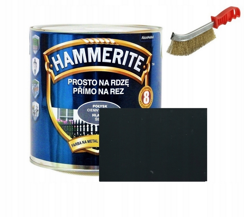 Hammerite Prosto Na Rdzę to nowoczesna, jednoskładnikowa farba, schnąca na powietrzu, przeznaczona do antykorozyjnego i dekoracyjnego malowania metali żelaznych (stal, żeliwo), zarówno tych pokrytych rdzą, jak i czystych. Może być również stosowana do zabezpieczenia metali nieżelaznych po odpowiednim zagruntowaniu.