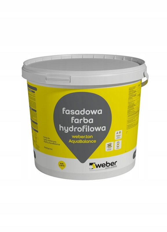 Farba elewacyjna weber.ton AquaBalance to nowoczesna powłoka o właściwościach hydrofilowych przeznaczona do barwnego wykończenia ścian budynków. Zastosowana technologia AquaBalance umożliwia szybkie wysychanie wody pojawiającej się na powierzchni elewacji w wyniku deszczu, mgły, czy rosy