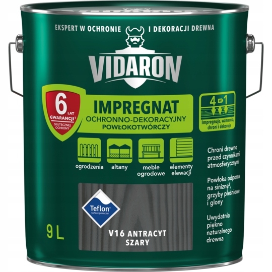 Impregnat Powłokotwórczy do ochronno-dekoracyjnego malowania drewna na zewnątrz i wewnątrz pomieszczeń. Uwydatnia piękno naturalnego drewna, impregnuje, wzmacnia i chroni je przed niszczącymi warunkami atmosferycznymi. Dodatkowo tworzy na powierzchni drewna ochronną powłokę odporną na biokorozję - siniznę, grzyby pleśniowe oraz glony. W połączeniu z bezbarwnym Impregnatem Ochronnym VIDARON zapewnia pełną ochronę drewna.
