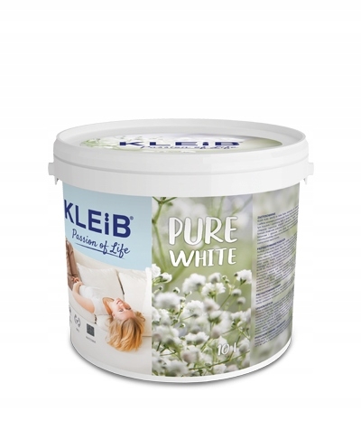 KLEIB PURE WHITE to biała farba lateksowa do malowania ścian i sufitów wewnątrz pomieszczeń. Farba charakteryzuje się doskonałym kryciem i czystością bieli, a dzięki minimalnemu poziomowi chlapania ogranicza stopień zabrudzeń. Dzięki innowacyjnej formule doskonale pokrywa tynki cementowo-wapienne, podłoża betonowe i gipsowe oraz płyty kartonowo-gipsowe, tworząc matową powłokę odporną na zmywanie. Jest to farba o wyjątkowo niskiej emisji zapachowej.