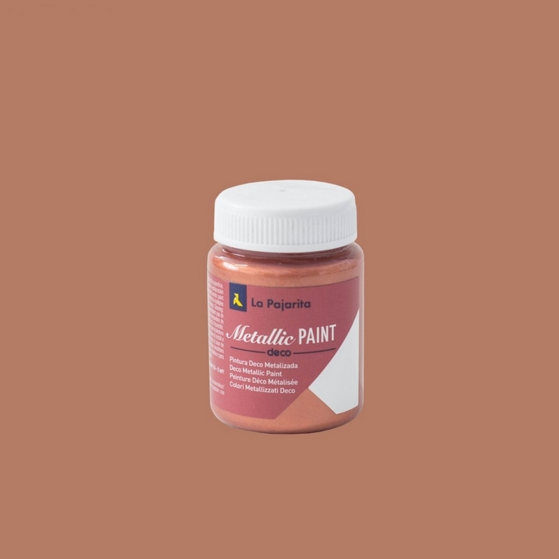 Farba akrylowa na bazie wody z metalicznym wykończeniem. Nadaje się do stosowania na wszystkich rodzajach powierzchni. Przygotowanie powierzchni przed malowaniem ani podkład nie są wymagane. Jeśli jednak jako pierwszą warstwę nałożymy białą farbę akrylową lub podkład, kolor i metaliczny efekt staną się jeszcze bardziej wyraziste. Farba jest bardzo dobrze kryjąca, z wysoką pigmentacją i wydajnością. Bardzo odporna na upływ czasu i wilgoć. Udekoruj, odrestauruj i nadaj nowe życie wszystkim meblom i przedmiotom, nadając im niepowtarzalny styl i osobisty charakter. Dobrze wstrząsnąć przed użyciem. Czas schnięcia 30-40 minut. Nieodpowiednie dla dzieci w wieku poniżej 36 miesięcy. Pojemność 75 ml - wystarczy do pokrycia 0,8-1 m2. Made in Spain. Wskazówka: Planując malowanie po tkaninach, które będą prane, należy wymieszać farbę metaliczną z MEDIUM DO TKANIN La Pajarita, uzyskuje się w ten sposób wspaniałą farbę o wysokiej przyczepności i elastyczności na tkaninie.