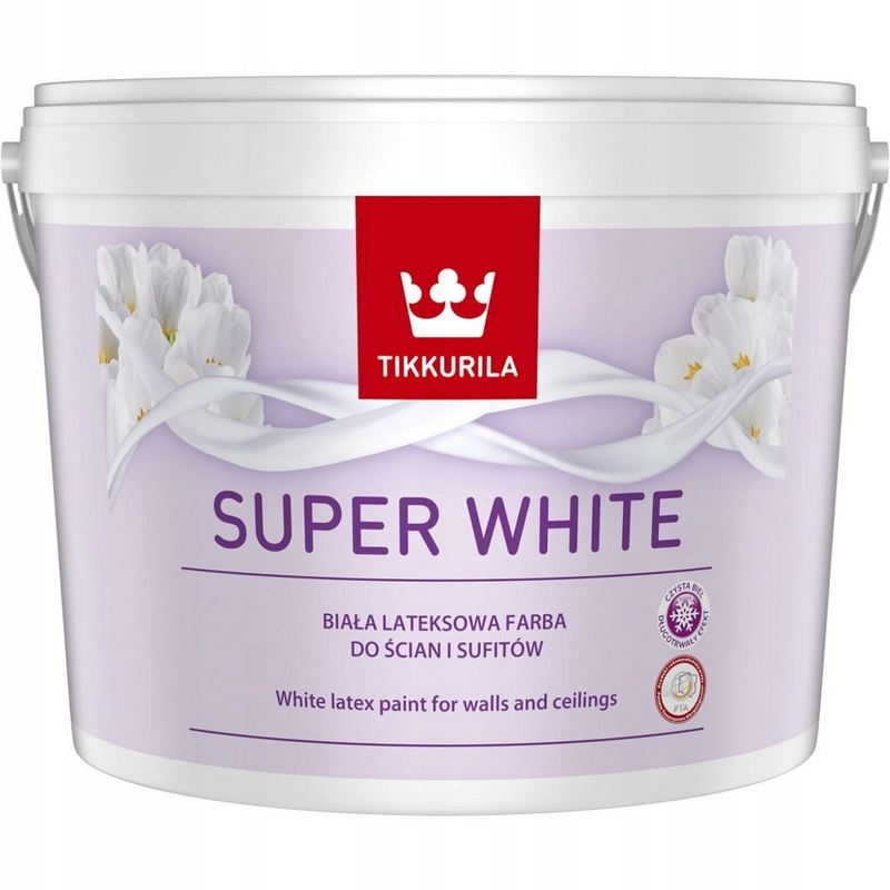 Tikkurila SUPER WHITE to farba do zastosowania wewnątrz obiektów, wyprodukowana przy wykorzystaniu innowacyjnej technologii oraz najwyższej jakości żywic i pigmentów. Wyjątkowa i oryginalna formuła tworzy niezwykle trwałe powłoki, które pozwalają na zachowanie idealnego wyglądu i koloru ścian. Wysoka odporność na mycie i szorowanie sprawia, że z pomalowanych powierzchni niezwykle łatwo usunąć plamy i zabrudzenia.