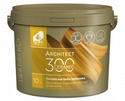 ARCHITECT 300 to ceramiczna , plamoodporna farba lateksowa o najwyższej odporności na szorowanie i zmywalności oraz doskonałej adhezji do podłoży mineralnych. Innowacyjna formuła z zastosowaniem wypełniaczy ceramicznych tworzy bardzo trwałą powłokę o satynowym lub matowym wykończeniu. Produkt opracowany na bazie najwyższej jakości surowców dzięki czemu Twój kolor pozostanie niezmieniony przez lata. Produkt nie chlapie podczas malowania. Farba dostępna w szerokiej gamie kolorystycznej wg FAST COLOR SYSTEM