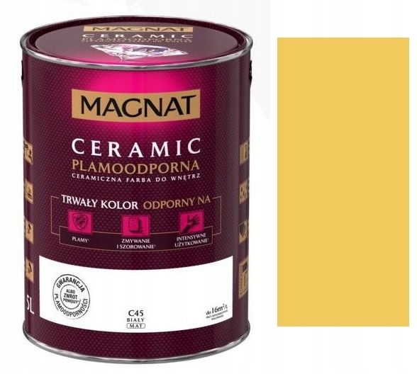 Emulsja Magnat Ceramic to ceramiczna farba trzeciej generacji marki Śnieżka. Unikalna formuła emulsji Magnat daje jej ponadprzeciętne parametry odporności na wielokrotne zmywanie i szorowanie na mokro. Do czyszczenia można używać dezynfektantów, gdyż emulsja ta jest odporna na środki czyszczące. Powierzchnie pokryte tą farbą są plamoodporne, nie absorbują zabrudzeń i trudnych plam np. z wina, kawy, ketchupu, oleju, pisaków wodnych, kredek itp.