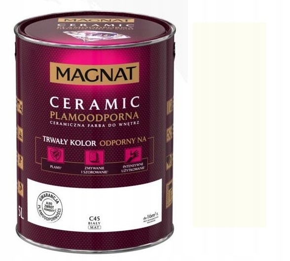 Emulsja Magnat Ceramic to ceramiczna farba trzeciej generacji marki Śnieżka. Unikalna formuła emulsji Magnat daje jej ponadprzeciętne parametry odporności na wielokrotne zmywanie i szorowanie na mokro. Do czyszczenia można używać dezynfektantów, gdyż emulsja ta jest odporna na środki czyszczące. Powierzchnie pokryte tą farbą są plamoodporne, nie absorbują zabrudzeń i trudnych plam np. z wina, kawy, ketchupu, oleju, pisaków wodnych, kredek itp.