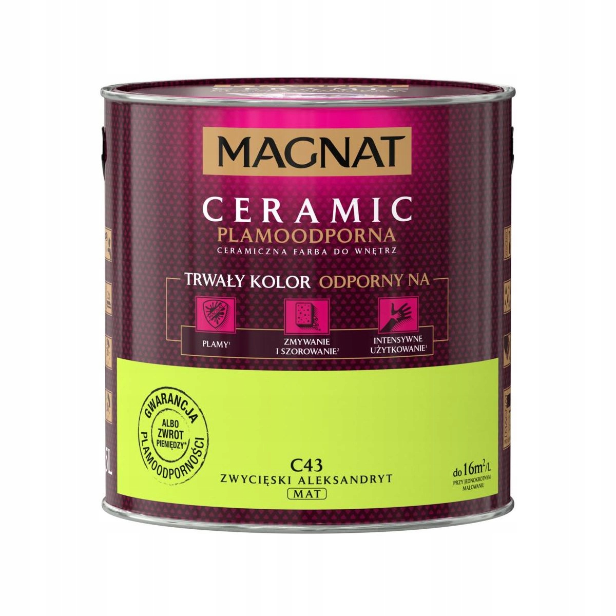 Emulsja Magnat Ceramic to ceramiczna farba trzeciej generacji marki Śnieżka. Unikalna formuła emulsji Magnat daje jej ponadprzeciętne parametry odporności na wielokrotne zmywanie i szorowanie na mokro. Do czyszczenia można używać dezynfektantów, gdyż emulsja ta jest odporna na środki czyszczące. Powierzchnie pokryte tą farbą są plamoodporne, nie absorbują zabrudzeń i trudnych plam np. z wina, kawy, ketchupu, oleju, pisaków wodnych, kredek itp.