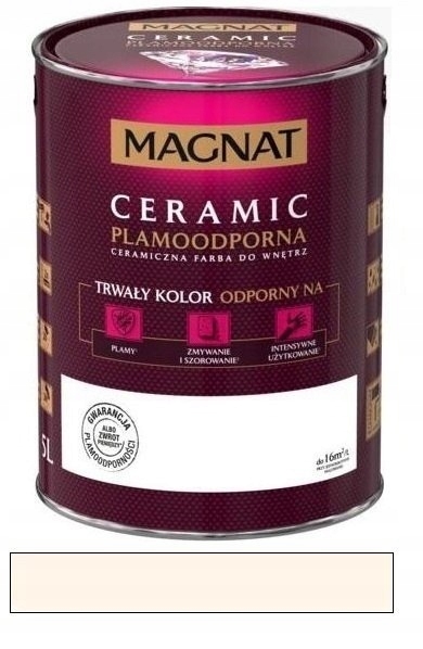 Magnat Ceramic to ceramiczna farba do wnętrz cechująca się doskonałym kryciem oraz dużą wydajnością. Farba Magnat Ceramic dzięki najwyższej jakości żywic i pigmentów powoduje, że pomalowanie powierzchnie są wyjątkowo odporne na szorowanie i wielokrotne zmywanie zachowując przy tym idealny wygląd ścian.