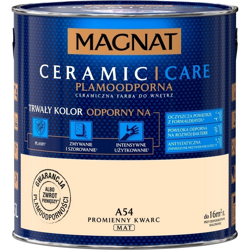 Farba MAGNAT CERAMIC CARE jest szczególnie polecana do pomieszczeń, w których współczesny człowiek spędza najwięcej czasu, jak: sypialnie, pokoje dziecięce, czy powierzchnie biurowe, w których może występować w powietrzu niekorzystnie oddziałujący formaldehyd. W związku z tym, że MAGNAT CERAMIC CARE jest produktem o ponadprzeciętnych właściwościach, rekomendowany jest do zastosowania także w innych pomieszczeniach, takich jak, np. kuchnie, salony, korytarze.