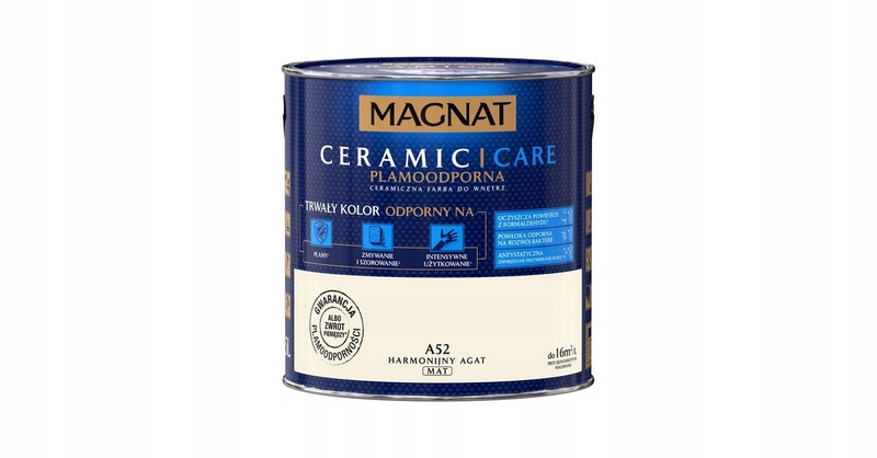 MAGNAT Ceramic Care dzięki swoim ponadprzeciętnym właściwościom rekomendowana jest do zastosowania w różnego typu pomieszczeniach takich jak np. kuchnie, salony, korytarze. Przede wszystkim jednak polecana jest do pomieszczeń w których spędzasz najwięcej czasu, jak: sypialnie, pokoje dziecięce, czy powierzchnie biurowe, w których może występować w powietrzu niekorzystnie oddziałujący formaldehyd. Dzięki bogatej palecie gotowych kolorów możesz w łatwy sposób wybrać swój ulubiony odcień do swoich pomieszczeń. Niniejsza farba świetnie sprawdza się przy dekoracyjno-ochronnym malowaniu ścian, a także tapet z włókna szklanego. Szeroki wachlarz jej przeznaczenia umożliwia również stosowanie jej na podłożach drewnianych, drewnopochodnych, metalowych użytkowanych wewnątrz pomieszczeń. Jednocześnie polecana jest również do stosowania w pomieszczeniach mieszkalnych, w budynkach oświaty czy w budynkach służby zdrowia, jak również w pomieszczeniach przeznaczonych do przechowywania produktów żywnościowych (pozbawionych bezpośredniego kontaktu z farbą).
