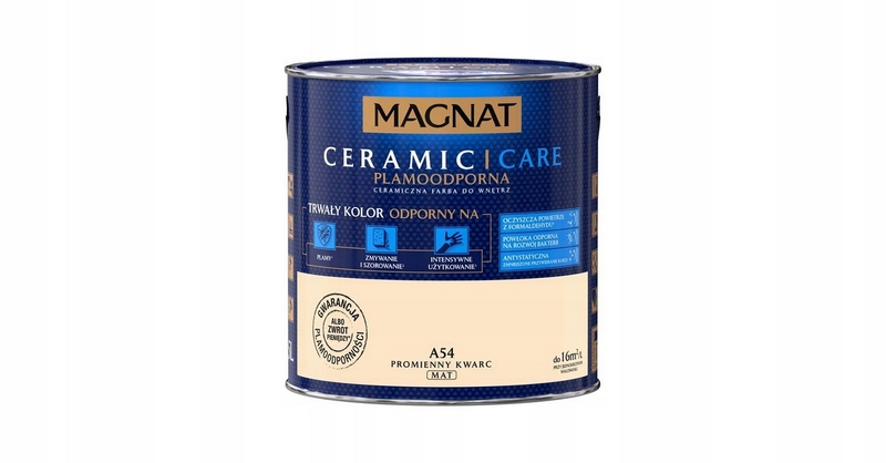 MAGNAT Ceramic Care dzięki swoim ponadprzeciętnym właściwościom rekomendowana jest do zastosowania w różnego typu pomieszczeniach takich jak np. kuchnie, salony, korytarze. Przede wszystkim jednak polecana jest do pomieszczeń w których spędzasz najwięcej czasu, jak: sypialnie, pokoje dziecięce, czy powierzchnie biurowe, w których może występować w powietrzu niekorzystnie oddziałujący formaldehyd. Dzięki bogatej palecie gotowych kolorów możesz w łatwy sposób wybrać swój ulubiony odcień do swoich pomieszczeń. Niniejsza farba świetnie sprawdza się przy dekoracyjno-ochronnym malowaniu ścian, a także tapet z włókna szklanego. Szeroki wachlarz jej przeznaczenia umożliwia również stosowanie jej na podłożach drewnianych, drewnopochodnych, metalowych użytkowanych wewnątrz pomieszczeń. Jednocześnie polecana jest również do stosowania w pomieszczeniach mieszkalnych, w budynkach oświaty czy w budynkach służby zdrowia, jak również w pomieszczeniach przeznaczonych do przechowywania produktów żywnościowych (pozbawionych bezpośredniego kontaktu z farbą).