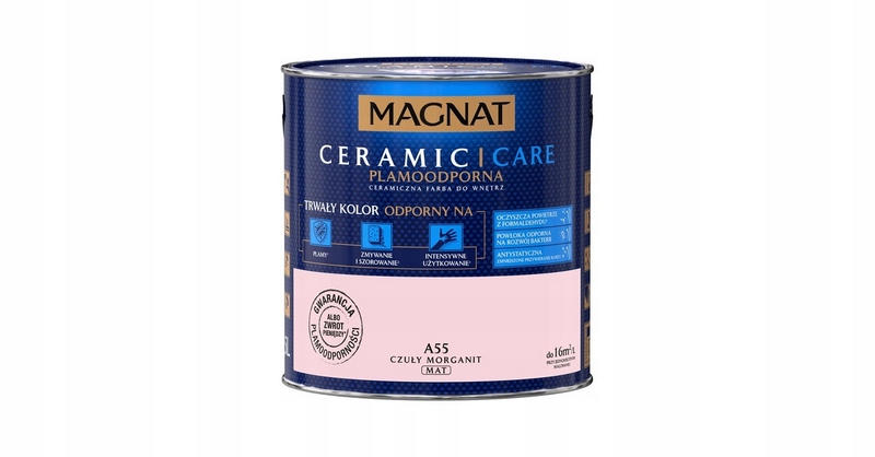MAGNAT Ceramic Care dzięki swoim ponadprzeciętnym właściwościom rekomendowana jest do zastosowania w różnego typu pomieszczeniach takich jak np. kuchnie, salony, korytarze. Przede wszystkim jednak polecana jest do pomieszczeń w których spędzasz najwięcej czasu, jak: sypialnie, pokoje dziecięce, czy powierzchnie biurowe, w których może występować w powietrzu niekorzystnie oddziałujący formaldehyd. Dzięki bogatej palecie gotowych kolorów możesz w łatwy sposób wybrać swój ulubiony odcień do swoich pomieszczeń. Niniejsza farba świetnie sprawdza się przy dekoracyjno-ochronnym malowaniu ścian, a także tapet z włókna szklanego. Szeroki wachlarz jej przeznaczenia umożliwia również stosowanie jej na podłożach drewnianych, drewnopochodnych, metalowych użytkowanych wewnątrz pomieszczeń. Jednocześnie polecana jest również do stosowania w pomieszczeniach mieszkalnych, w budynkach oświaty czy w budynkach służby zdrowia, jak również w pomieszczeniach przeznaczonych do przechowywania produktów żywnościowych (pozbawionych bezpośredniego kontaktu z farbą).