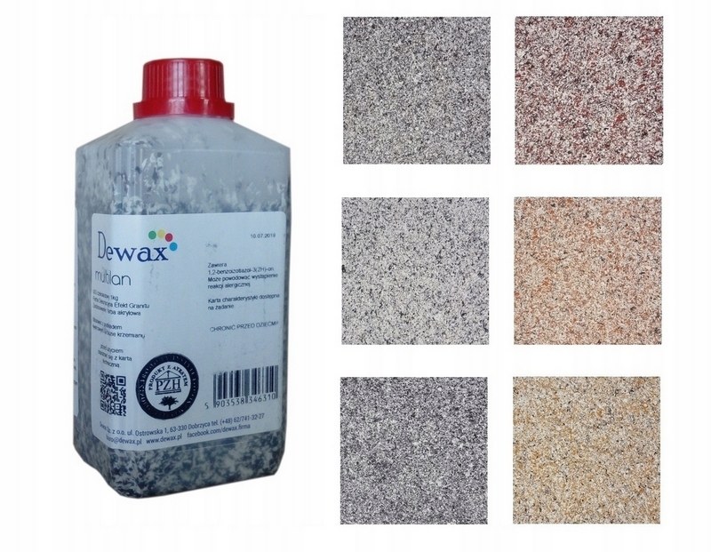 Płaszczyzny pomalowane farbą charakteryzuje przyjemna dla oka imitacja granitu, a podwyższone krycie wpływa na ekonomiczne wykorzystanie farby.