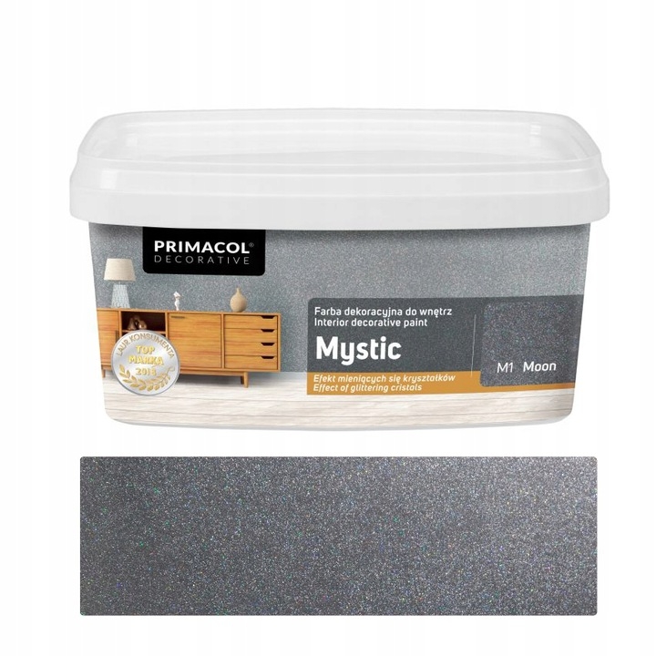 Łatwa w użyciu dekoracyjna farba do wnętrz. Tysiące zawartych w farbie drobinek, iskrząc i mieniąc się w świetle nadają powierzchniom spektakularny efekt wizualny. Mystic doskonale sprawdza się zarówno w bardzo nowoczesnych jak i klasycznych wnętrzach, całkowicie odmieniając wygląd pomieszczeń. Produkt jest dostępny w palecie gotowych kolorów.