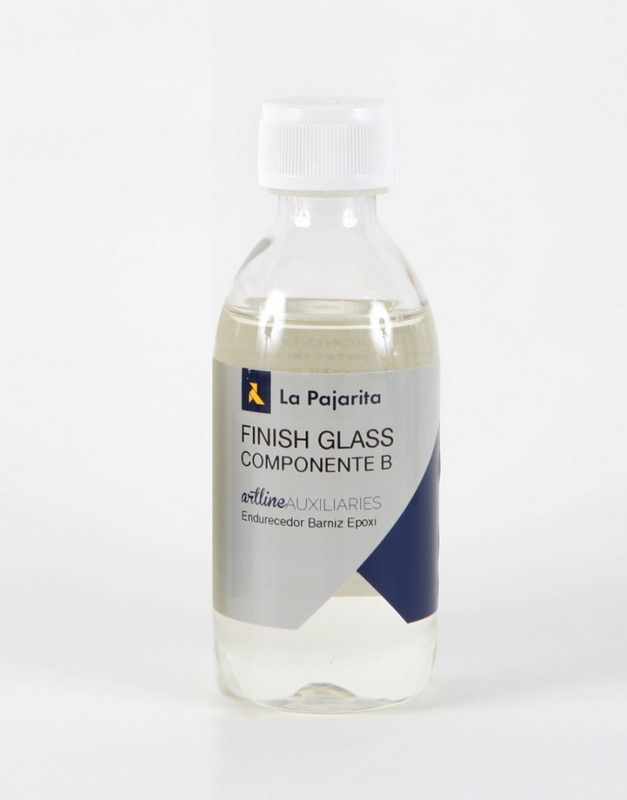 Składnik B (utwardzacz) dwuskładnikowego lakieru szklącego na bazie żywicy epoksydowej. Składnik A należy dokupić osobno. Lakier szklący tworzy powierzchnię podobną twardością i przejrzystością do szkła. Daje bardzo wyrazisty i błyszczący efekt. Można go użyć na powierzchniach takich jak drewno, karton, metal, gips, ceramika, kamień itp. Istotne jest aby ozdabiana powierzchnia była czysta, sucha i płaska (z obłych przedmiotów będzie spływać i nie uzyska się tak dobrego efektu). Nadaje się do pokrywania mebli np. blaty stołów. Można nakładać go pędzlem z naturalnego włosia lub wylewać bezpośrednio na naszą pracę. Można mu nadać barwę za pomocą barwników na bazie rozpuszczalnika. Czas schnięcia od 12 do 24 godzin. Ostatecznie utwardza się po 72h. Nieodpowiednie dla dzieci w wieku poniżej 36 miesięcy. Trzymać poza zasięgiem dzieci. Pojemność 250 ml. Made in Spain. Sposób użycia: 1. W proporcji 2:1 odmierz składnik A (żywica) i składnik B (utwardzacz). 2. Bardzo dobrze wymieszaj oba składniki. Jeśli używasz zakręcanego słoiczka energicznie potrząsaj nim przez około 2 minuty. 3. Wylej równomiernie lakier na powierzchnię, można pomóc sobie szpatułką. 4. Pozostaw do wyschnięcia (12-24h) w takim miejscu, żeby nie miał kontaktu z kurzem ani innymi fruwającymi drobiazgami (piach, listki itp.). Wskazówki: Wymieszany lakier nałóż na ozdabianą powierzchnię przed upływem 15 minut, później będzie to niemożliwe ponieważ zacznie on gęstnieć. Należy go używać w temperaturze pokojowej aby uniknąć pojawiania się bąbelków powietrza. Wskazówki bezpieczeństwa: Nie należy połykać ani wdychać oparów. Pracować tylko w rękawiczkach ochronnych, powoduje poparzenia skóry i uszkodzenia oczu. Może wywołać reakcję alergiczną. Trzymać poza zasięgiem dzieci. Umyć dokładnie ręce po skończeniu pracy z preparatem. Jeśli zajdzie potrzeba interwencji lekarskiej opakowanie lub informacje należy mieć pod ręką. Jeśli produkt miał kontakt ze skórą (lub włosami) należy zdjąć zanieczyszczone ubranie i dokładnie przepłukać wodą. Jeśli produkt dostał się do oczu, należy je delikatnie płukać wodą przez kilka minut. Jeśli są założone i jest to możliwe zdjąć soczewki kontaktowe. Płukać oczy dalej. Bezzwłocznie skontaktować się z lekarzem. Zawiera alkohol benzylowy, aminy cykloalifatyczne, 3-aminometylo-3,5,5-trimetylocykloheksyloaminę.